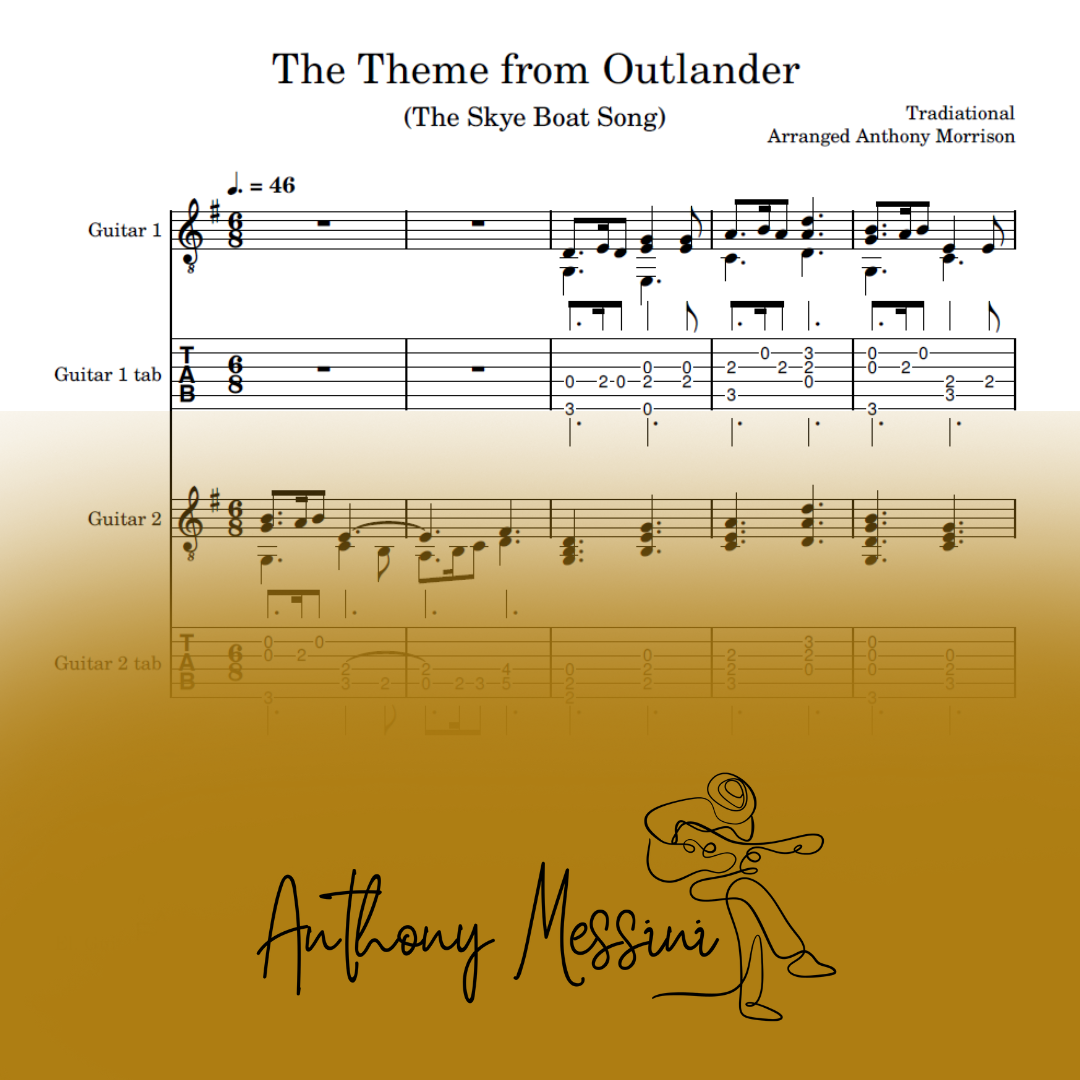 An arrangement for two guitars in both manuscript and tablature of an traditional song "The Skye Boat Song". (On Spotify now)