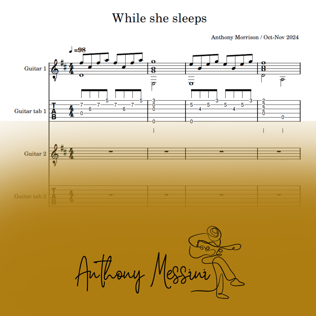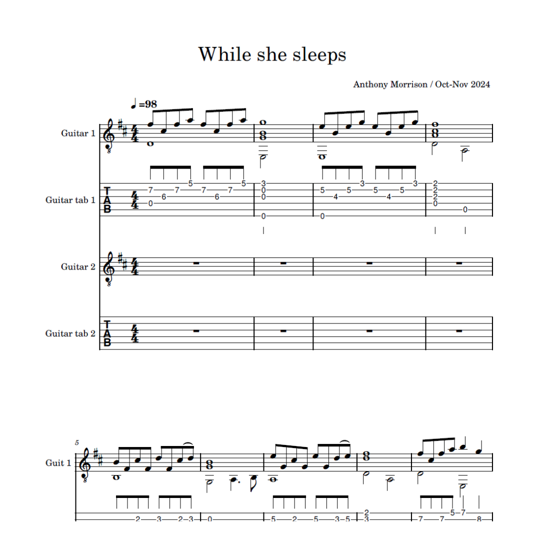 An arrangement for two guitars in both manuscript and tablature of an original piece of music "While she Sleeps" - Anthony Messini
